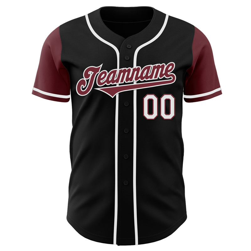 Custom Black Burgundy-White Authentic Two Tone Baseball Jersey