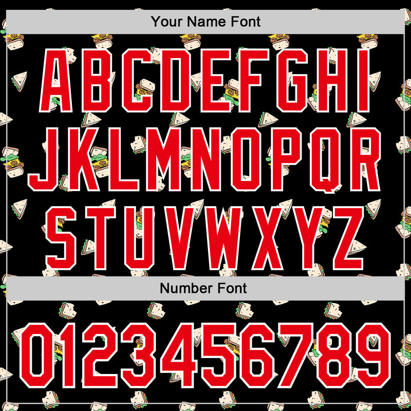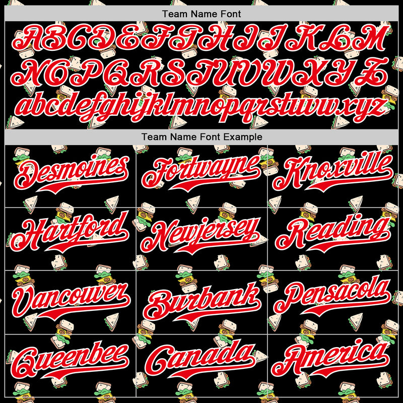 Custom Black Fire Red-White 3D Pattern Design Foodie Fast Food Sandwich Authentic Baseball Jersey