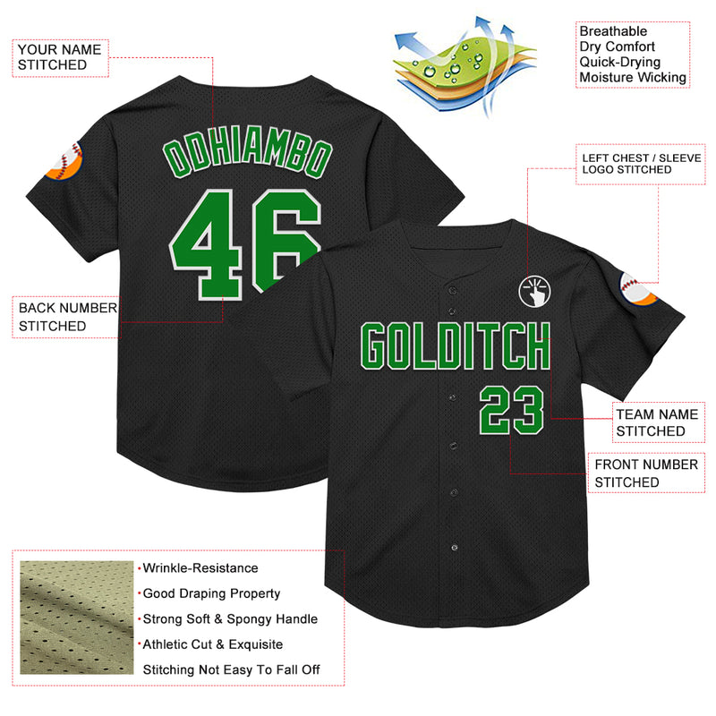 Custom Black Grass Green-White Mesh Authentic Throwback Baseball Jersey