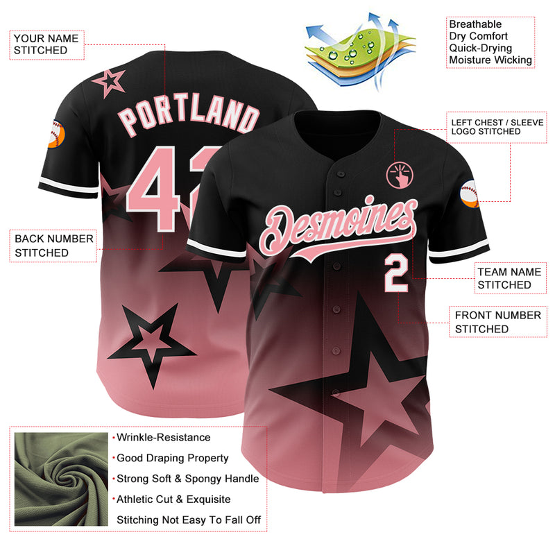 Custom Black Medium Pink-White 3D Pattern Design Gradient Style Twinkle Star Authentic Baseball Jersey