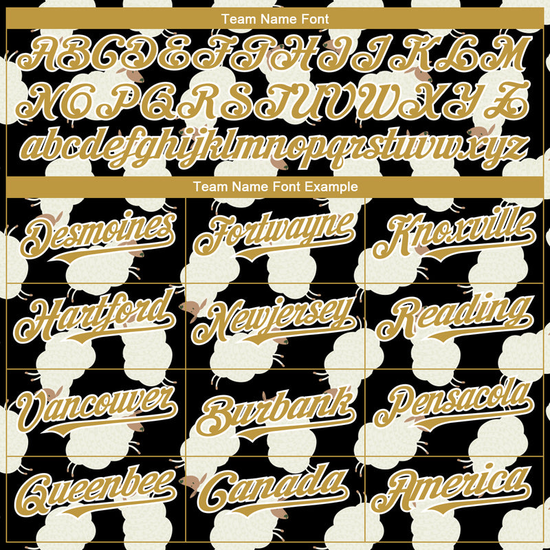 Custom Black Old Gold-White 3D Pattern Design Goat Authentic Baseball Jersey