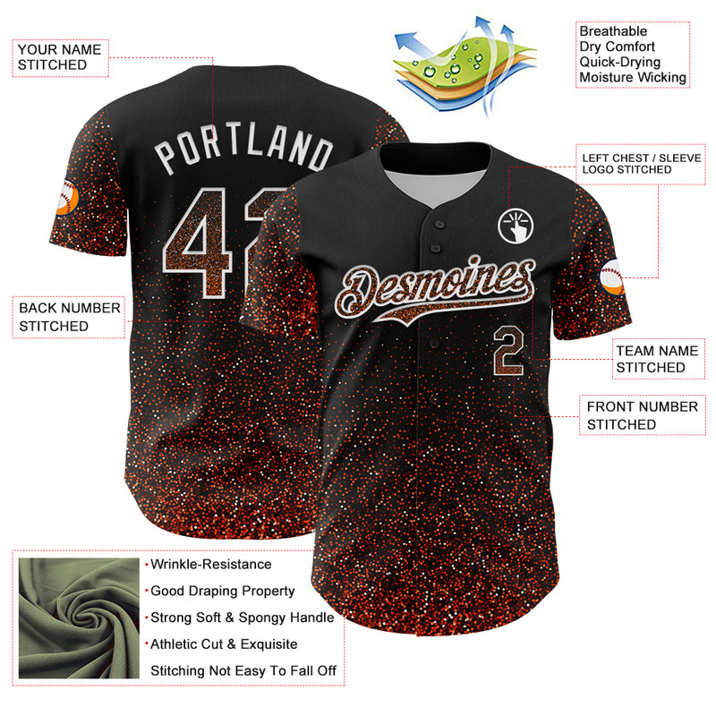 Custom Black Orange-White 3D Pattern Design Abstract Colorful Glittering Dot Authentic Baseball Jersey