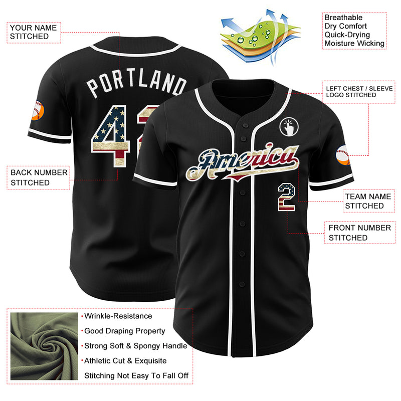 Custom Black Vintage USA Flag-White Authentic Baseball Jersey