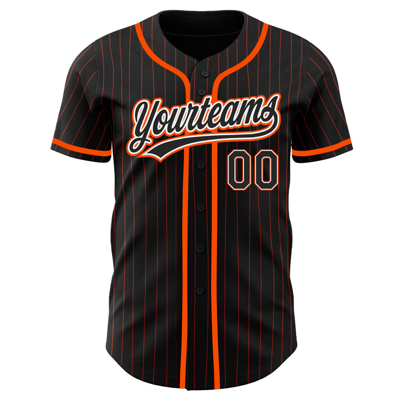 Custom Black Orange Pinstripe Black-White Authentic Baseball Jersey