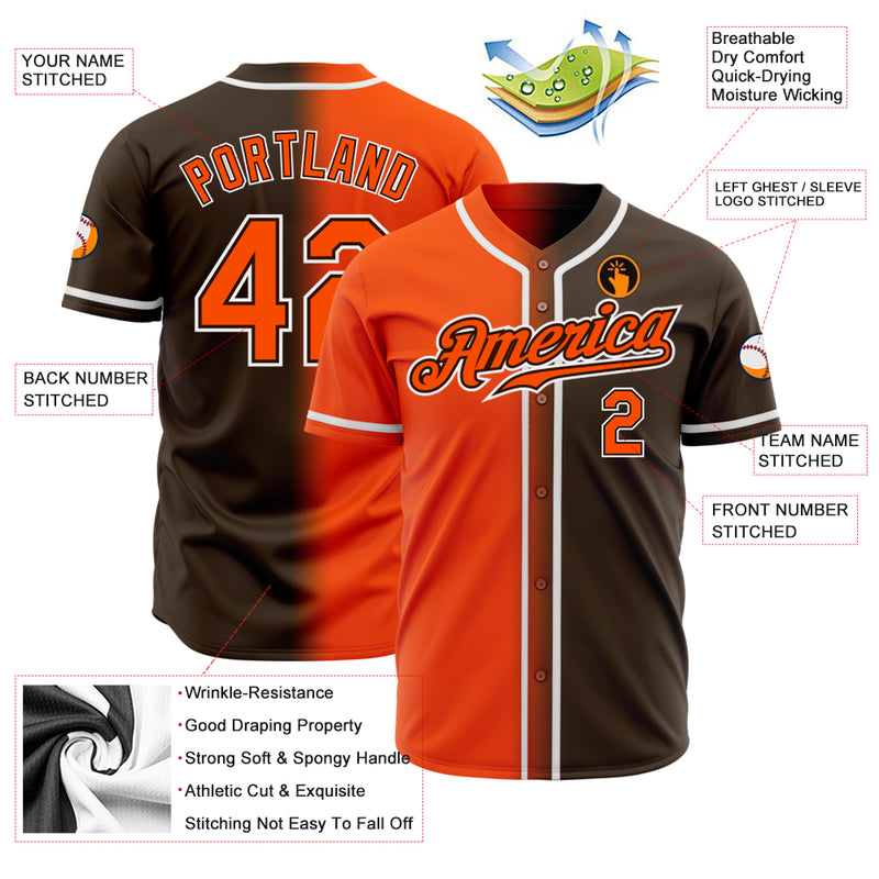 Custom Brown Orange-White Authentic Gradient Fashion Baseball Jersey