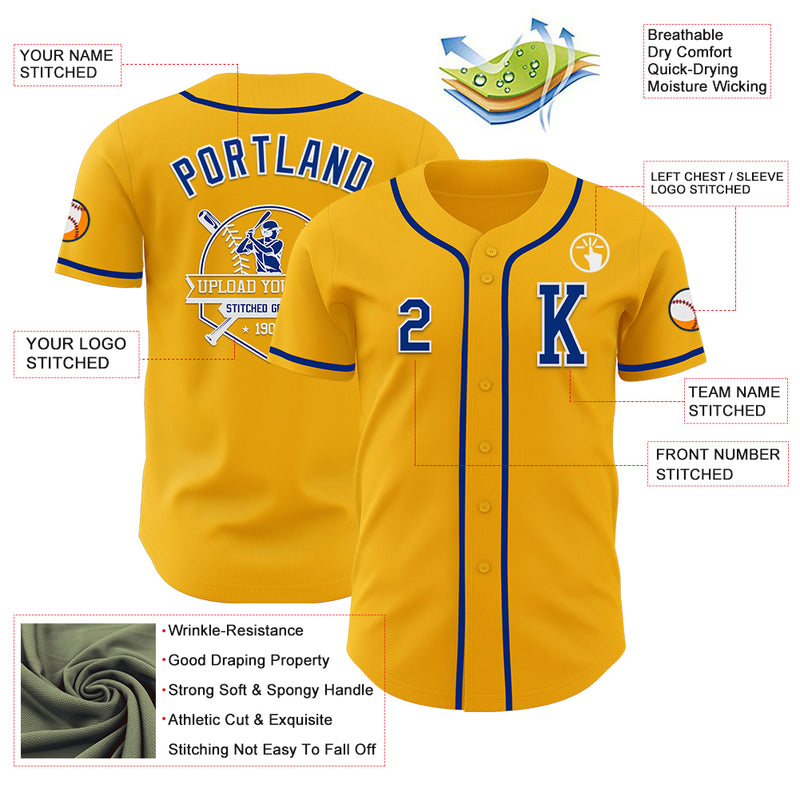 Custom Gold Royal-White Authentic Baseball Jersey