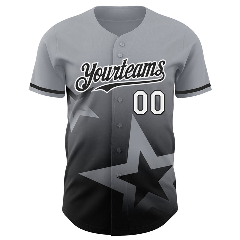 Custom Gray Black-White 3D Pattern Design Gradient Style Twinkle Star Authentic Baseball Jersey