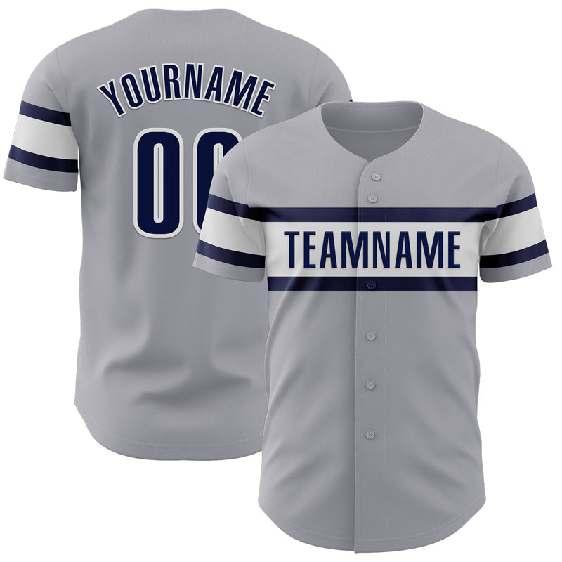 Custom Gray Navy-White Authentic Baseball Jersey