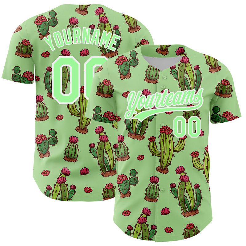 Custom Green Pea Green-White 3D Pattern Design Cactus Festival Authentic Baseball Jersey