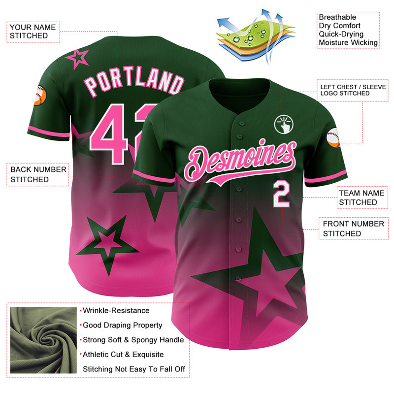 Custom Green Pink-White 3D Pattern Design Gradient Style Twinkle Star Authentic Baseball Jersey