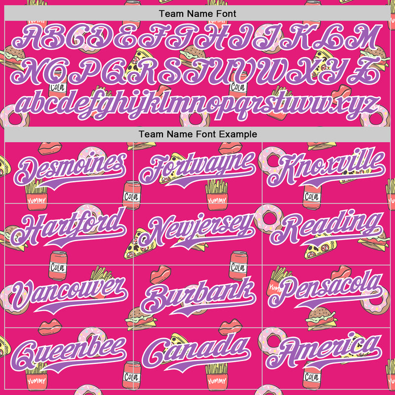 Custom Hot Pink Medium Purple-White 3D Pattern Design Foodie Fast Food Pizza Donut Cola Authentic Baseball Jersey