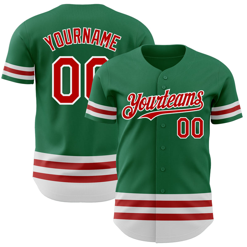 Custom Kelly Green Red-White Line Authentic Baseball Jersey