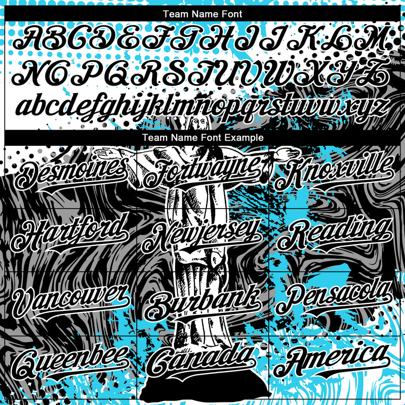 Custom Light Blue Black-White 3D Pattern Design Religion Jesus Christ Authentic Baseball Jersey