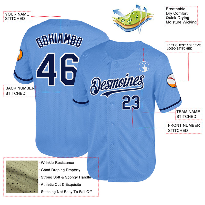 Custom Light Blue Navy-White Mesh Authentic Throwback Baseball Jersey