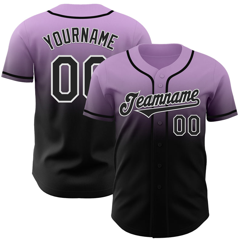 Custom Light Purple Black-White Authentic Fade Fashion Baseball Jersey