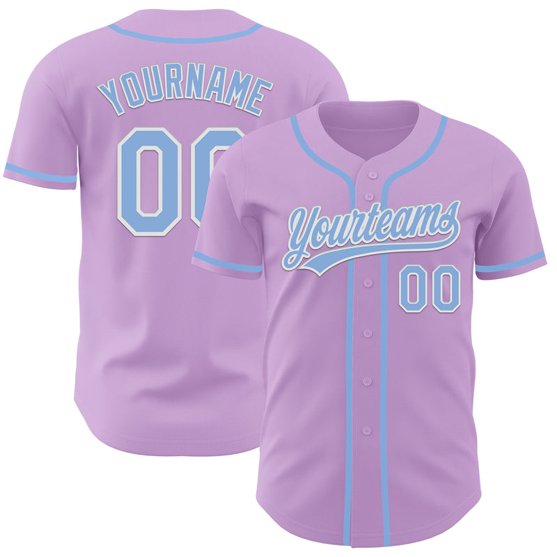 Custom Light Purple Light Blue-White Authentic Baseball Jersey