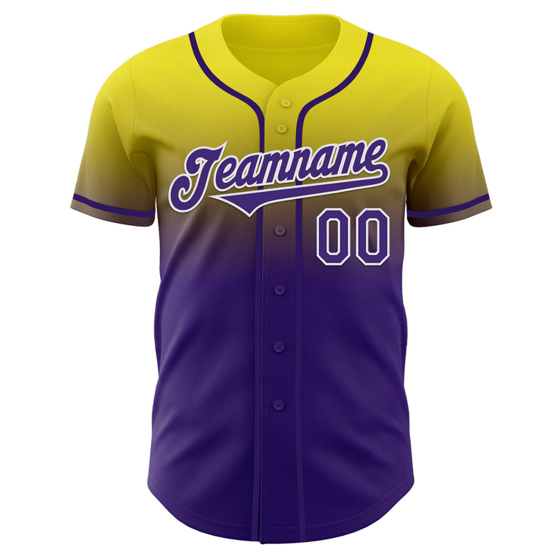 Custom Light Yellow Purple-White Authentic Fade Fashion Baseball Jersey