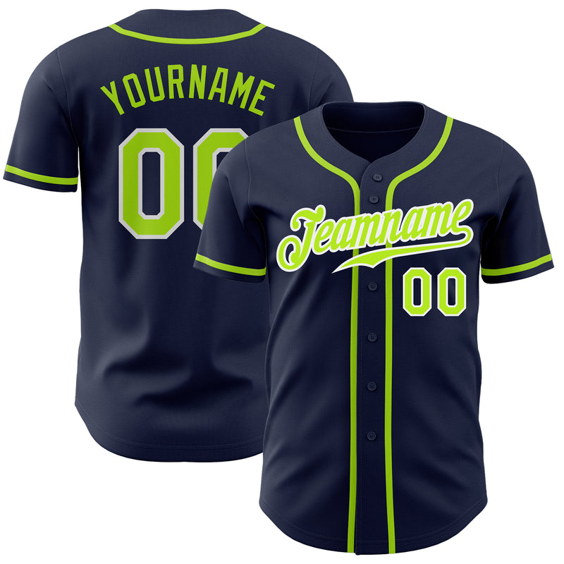 Custom Navy Neon Green-White Authentic Baseball Jersey