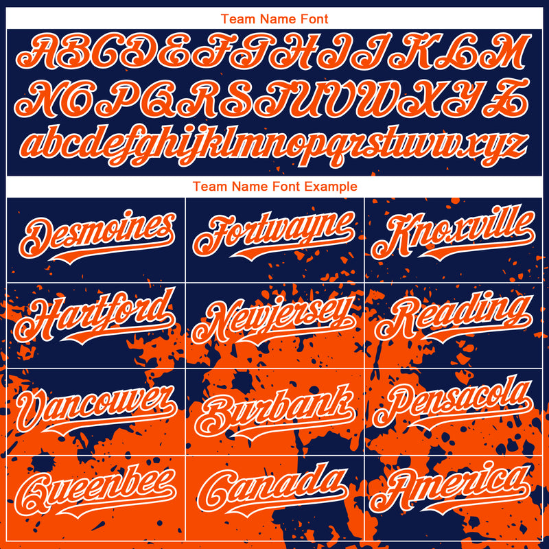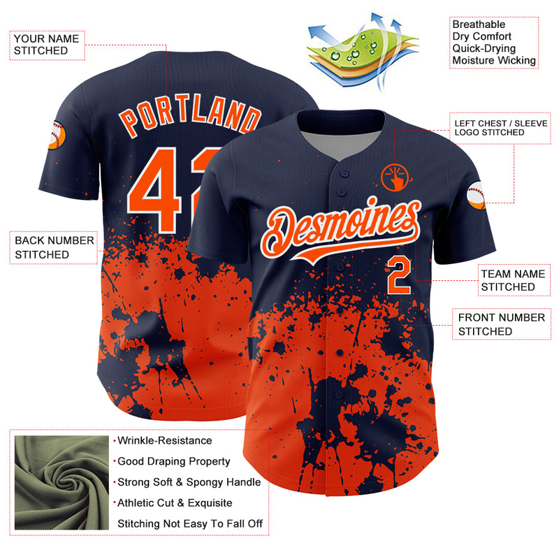 Custom Navy Orange-White 3D Pattern Design Abstract Splash Grunge Art Authentic Baseball Jersey