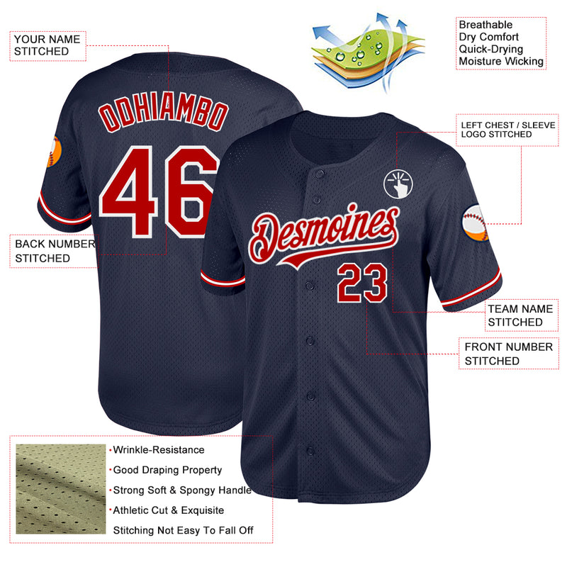 Custom Navy Red-White Mesh Authentic Throwback Baseball Jersey