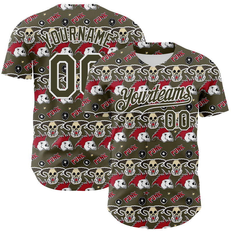 Custom Olive White 3D Punk Rock Skull Authentic Baseball Jersey