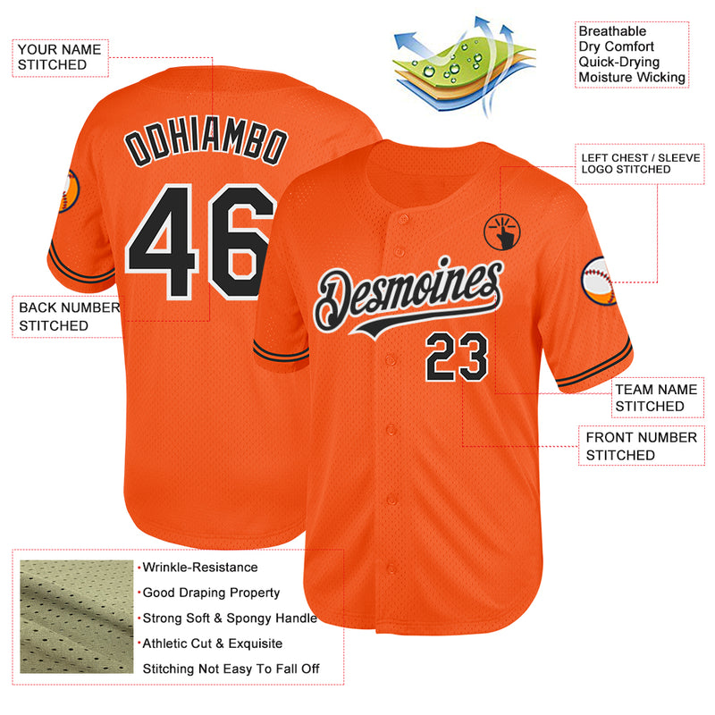 Custom Orange Black-White Mesh Authentic Throwback Baseball Jersey
