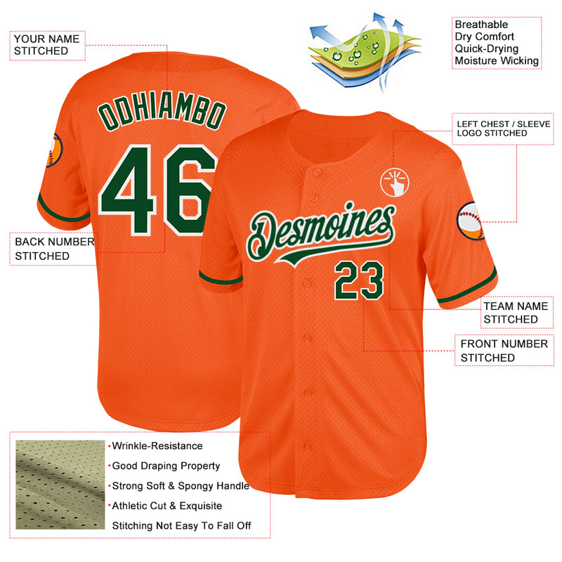 Custom Orange Green-White Mesh Authentic Throwback Baseball Jersey