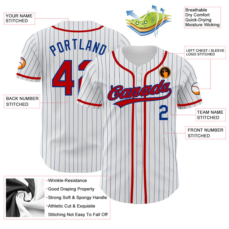 Custom White Royal Pinstripe Red Authentic Baseball Jersey
