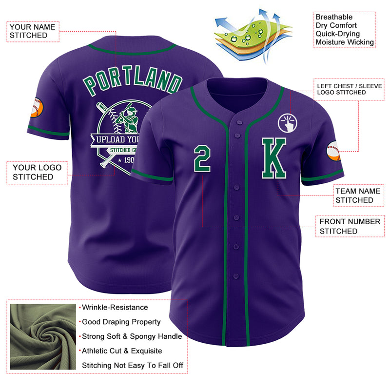 Custom Purple Kelly Green-White Authentic Baseball Jersey