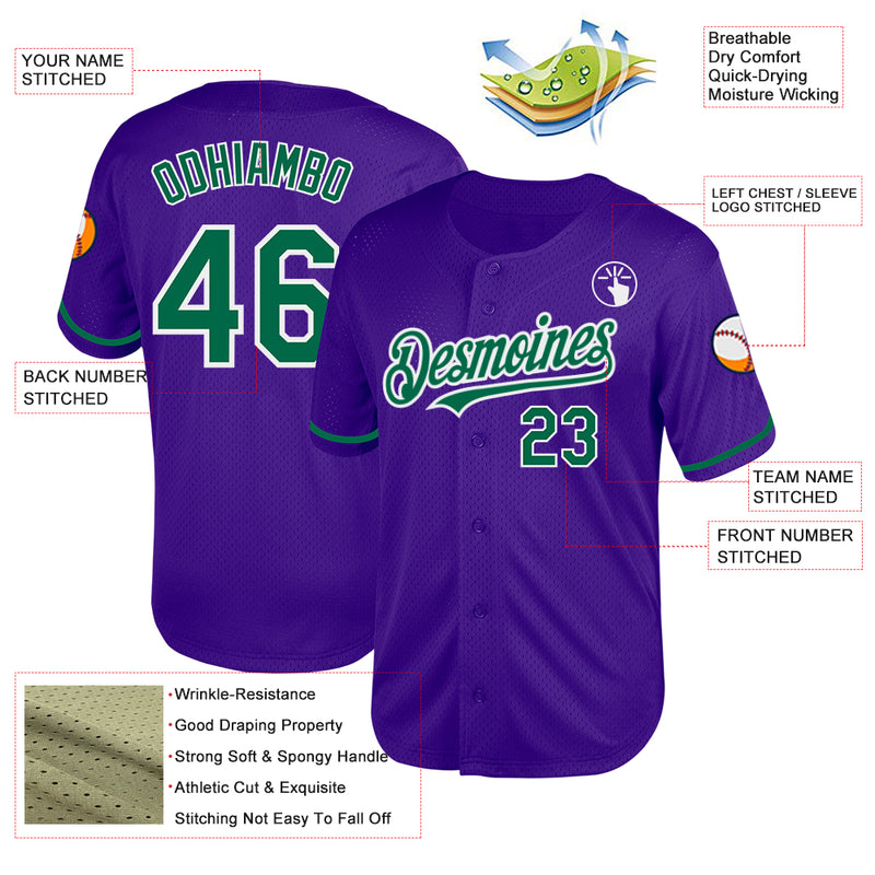 Custom Purple Kelly Green-White Mesh Authentic Throwback Baseball Jersey