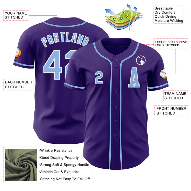 Custom Purple Light Blue-White Authentic Baseball Jersey