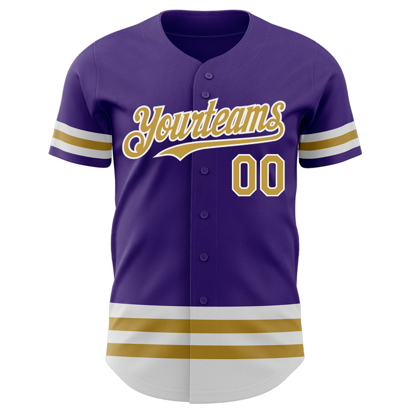 Custom Purple Old Gold-White Line Authentic Baseball Jersey