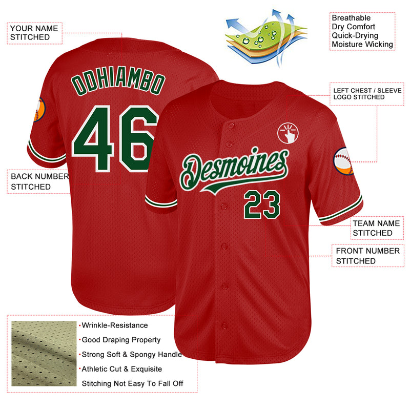 Custom Red Green-White Mesh Authentic Throwback Baseball Jersey