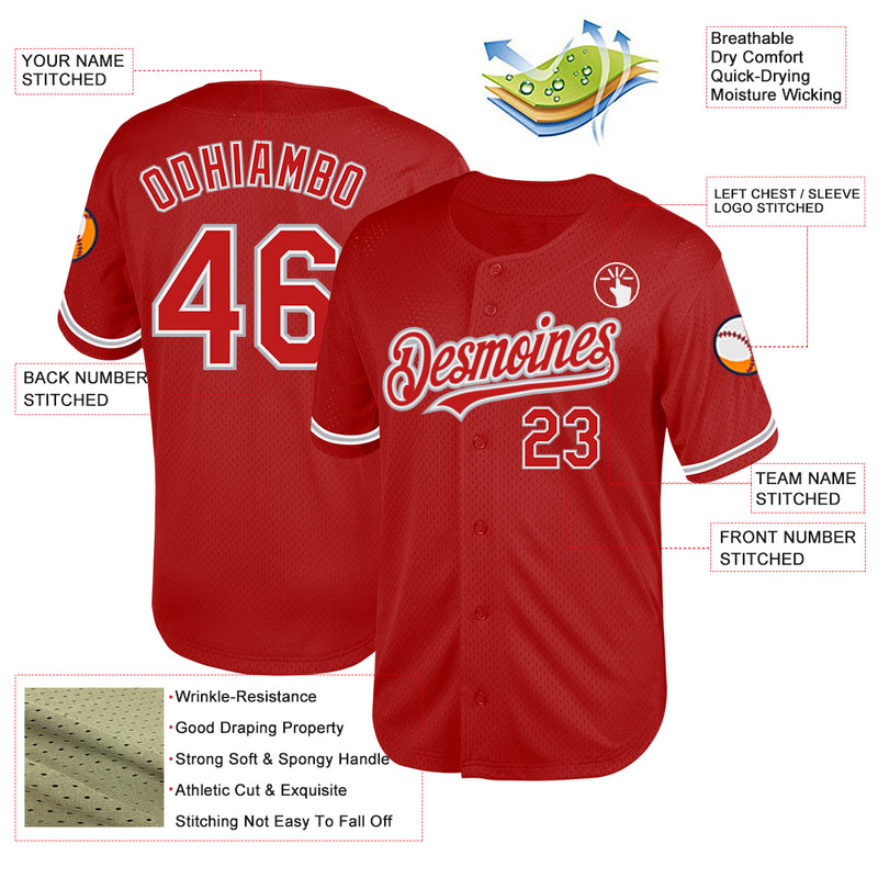 Custom Red White-Gray Mesh Authentic Throwback Baseball Jersey