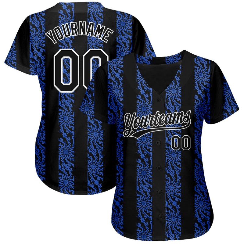 Custom Royal Black-White 3D Pattern Design Authentic Baseball Jersey