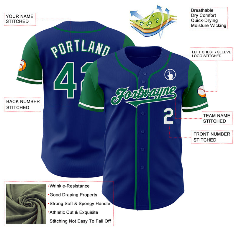 Custom Royal Kelly Green-White Authentic Two Tone Baseball Jersey