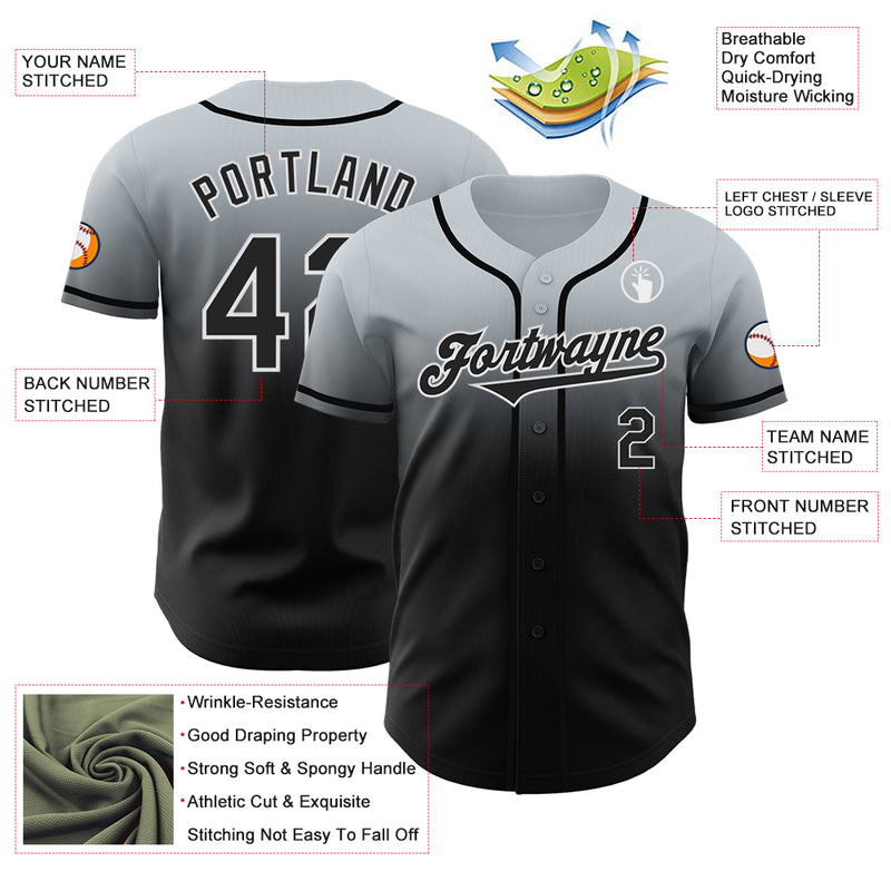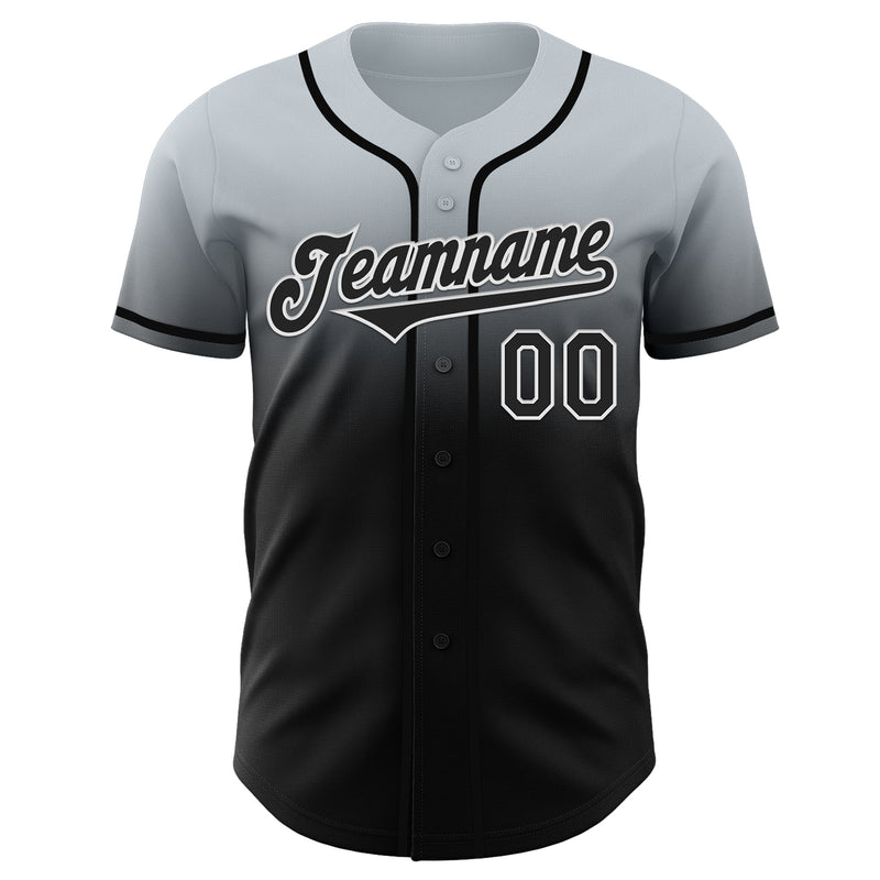 Custom Silver Black-White Authentic Fade Fashion Baseball Jersey