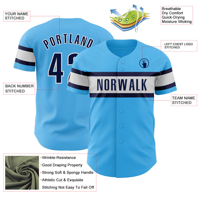 Custom Sky Blue Navy-White Authentic Baseball Jersey