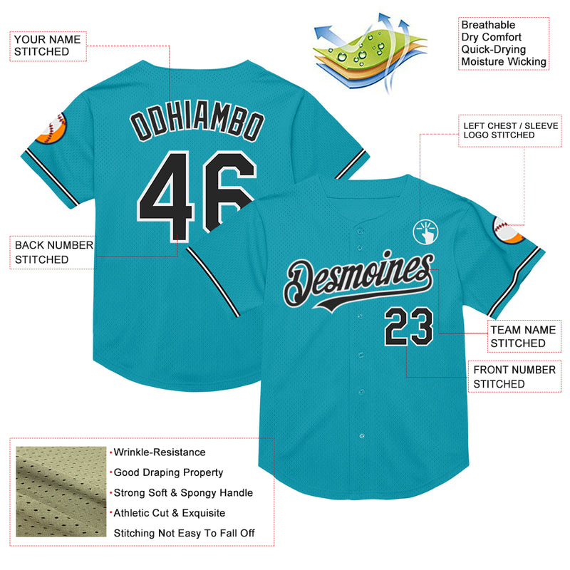 Custom Teal Black-White Mesh Authentic Throwback Baseball Jersey