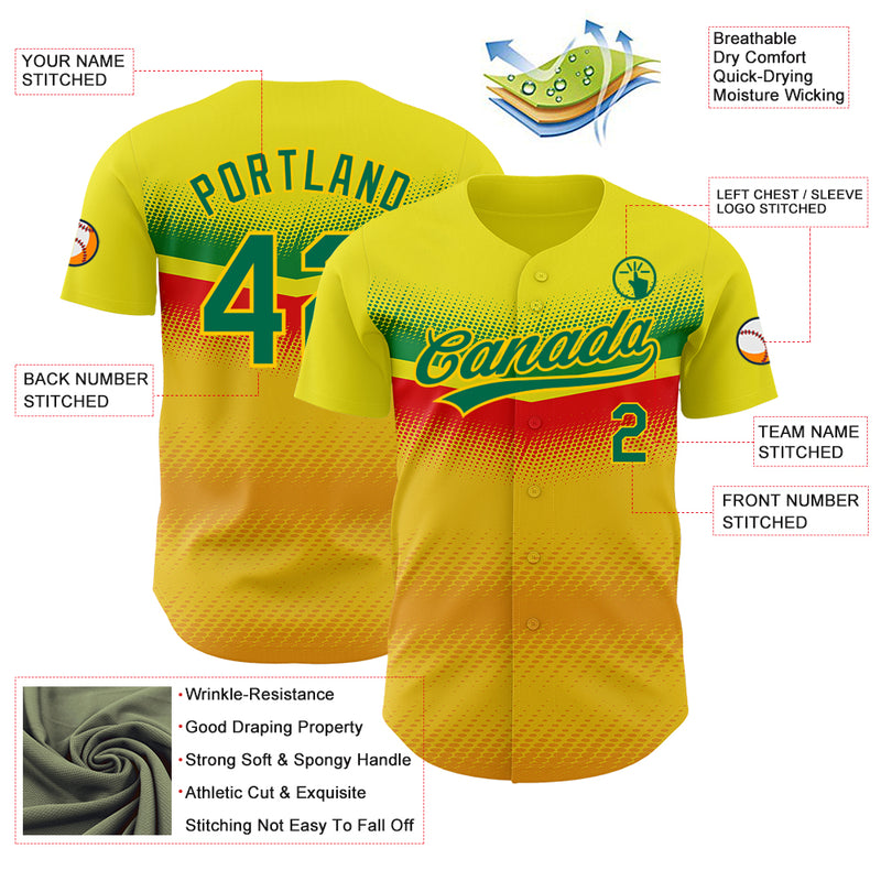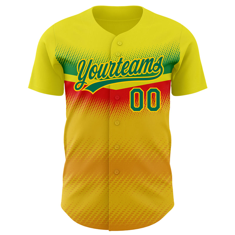 Custom Yellow Kelly Green 3D Pattern Design Abstract Vibe Dots Authentic Baseball Jersey