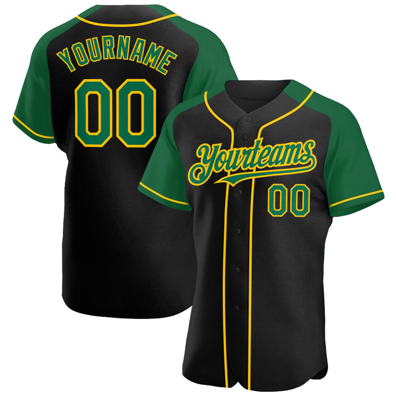Custom Black Kelly Green-Yellow Authentic Raglan Sleeves Baseball Jersey