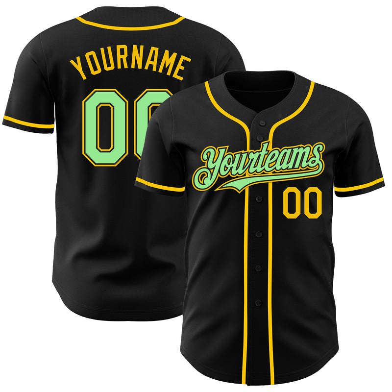 Custom Black Pea Green-Yellow Authentic Baseball Jersey