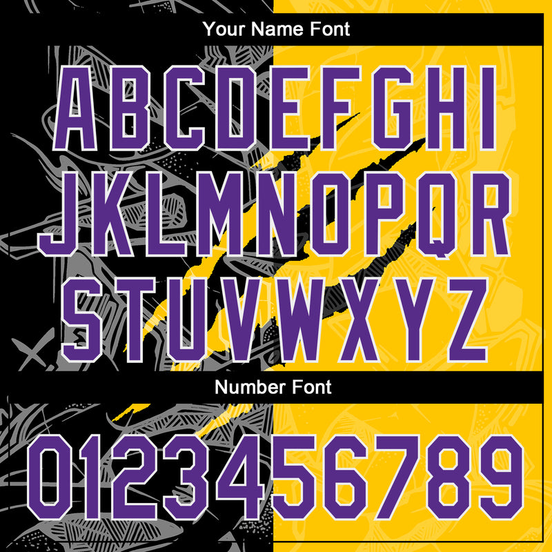 Custom Graffiti Pattern Purple Yellow-Black 3D Scratch Authentic Baseball Jersey