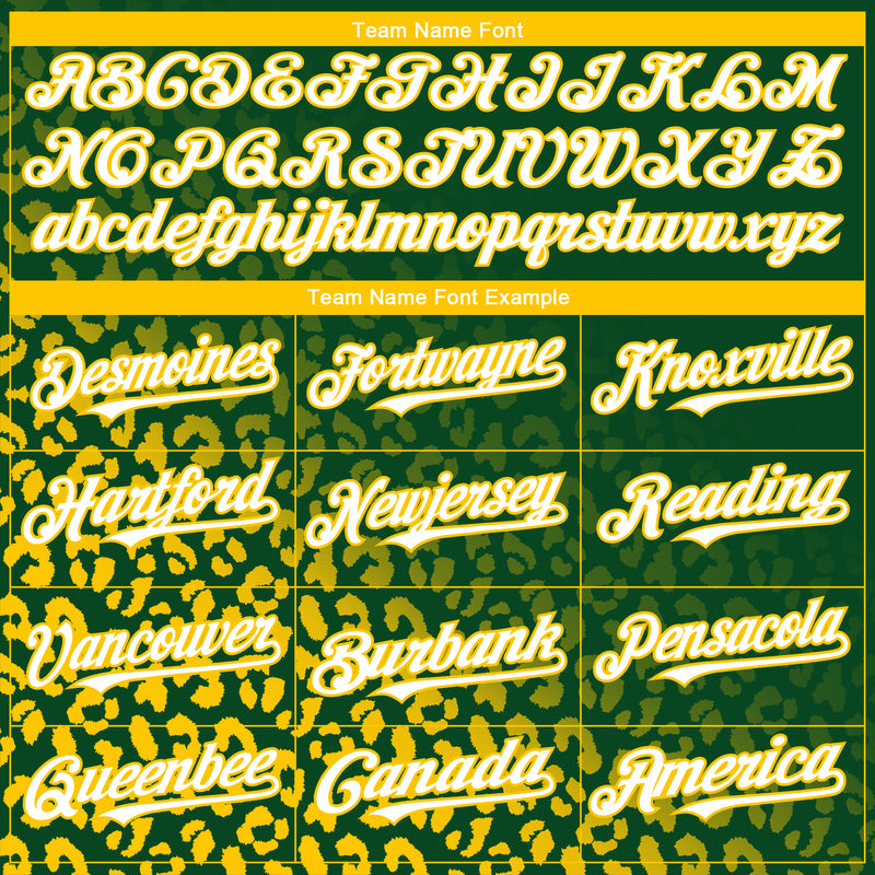 Custom Green White-Yellow 3D Pattern Design Leopard Print Fade Fashion Authentic Baseball Jersey