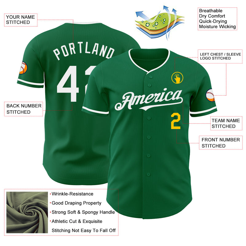 Custom Kelly Green White-Yellow Authentic Baseball Jersey
