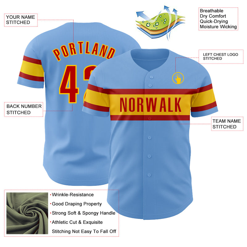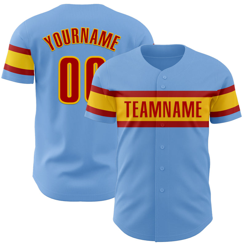 Custom Light Blue Red-Yellow Authentic Baseball Jersey