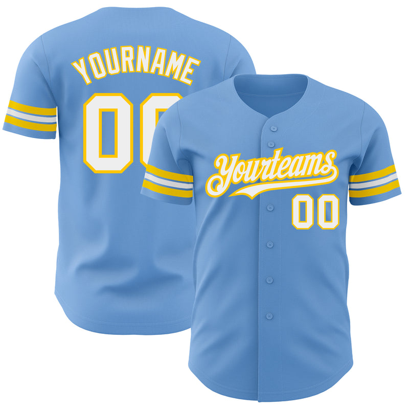 Custom Light Blue White-Yellow Authentic Baseball Jersey