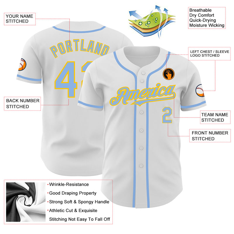Custom White Light Blue-Yellow Authentic Baseball Jersey
