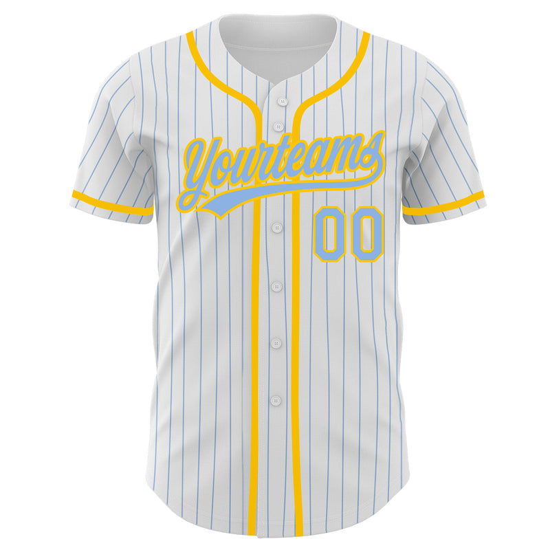 Custom White Light Blue Pinstripe Light Blue-Yellow Authentic Baseball Jersey