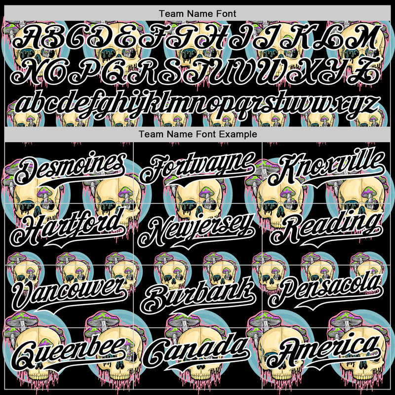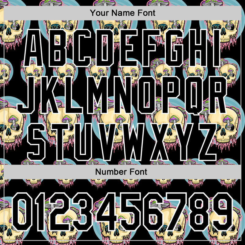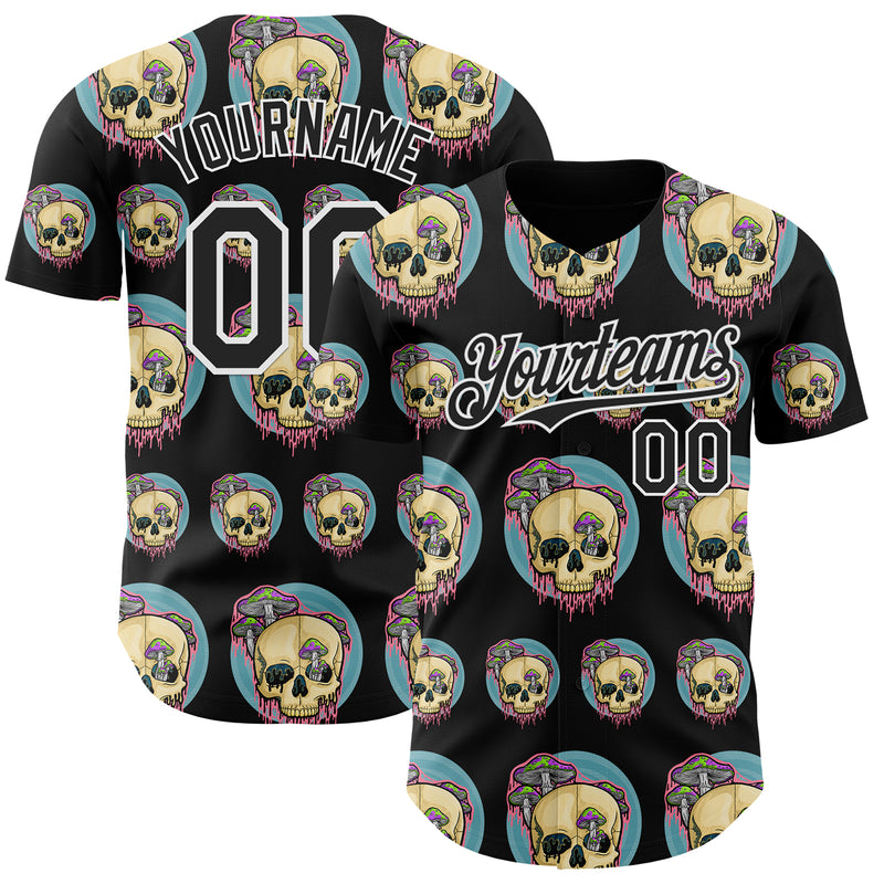 Custom Black White 3D Illymakes Drippy Mushroom Skulls Authentic Baseball Jersey